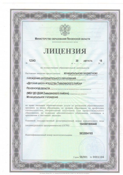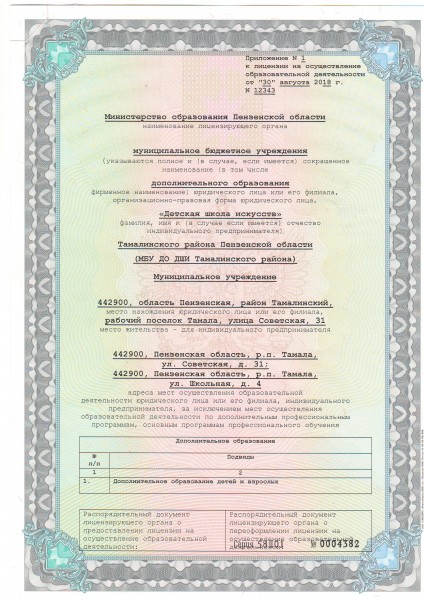 | Полное наименование образовательной организации* | муниципальное бюджетное учреждение дополнительного образования «Детская школа искусств» Тамалинского района Пензенской области |